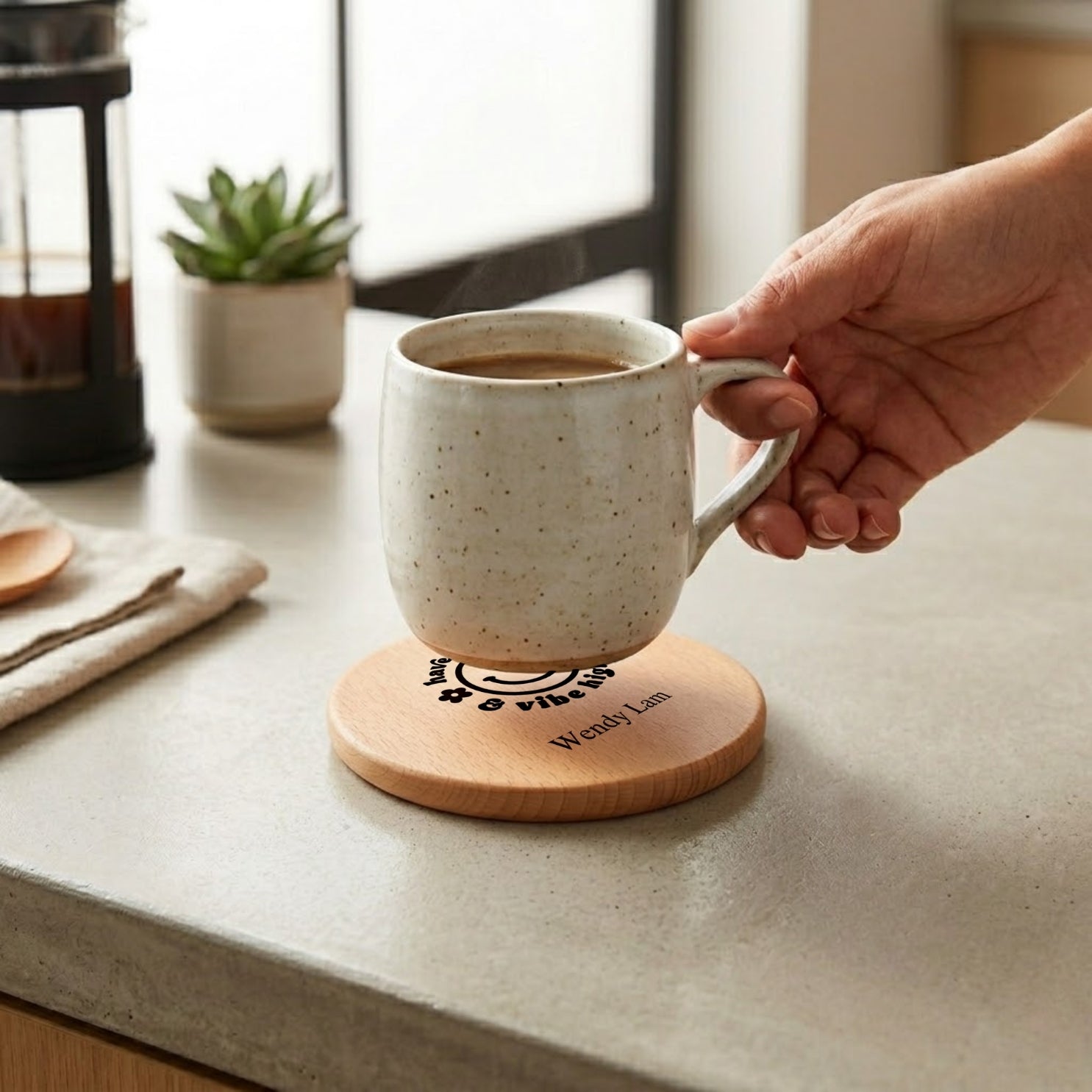 Personalised Wood Cup Coasters | Custom Design | Personalized Engraving Gift | Customized Wood Children's Day